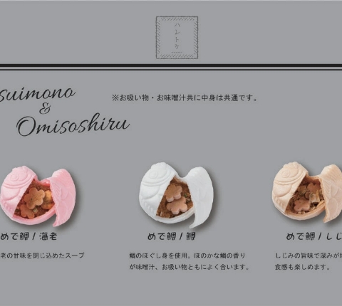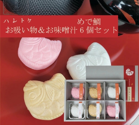 可愛い鯛のかたちをしたお吸い物と味噌汁です。お祝いや、御礼などにもピッタリです。